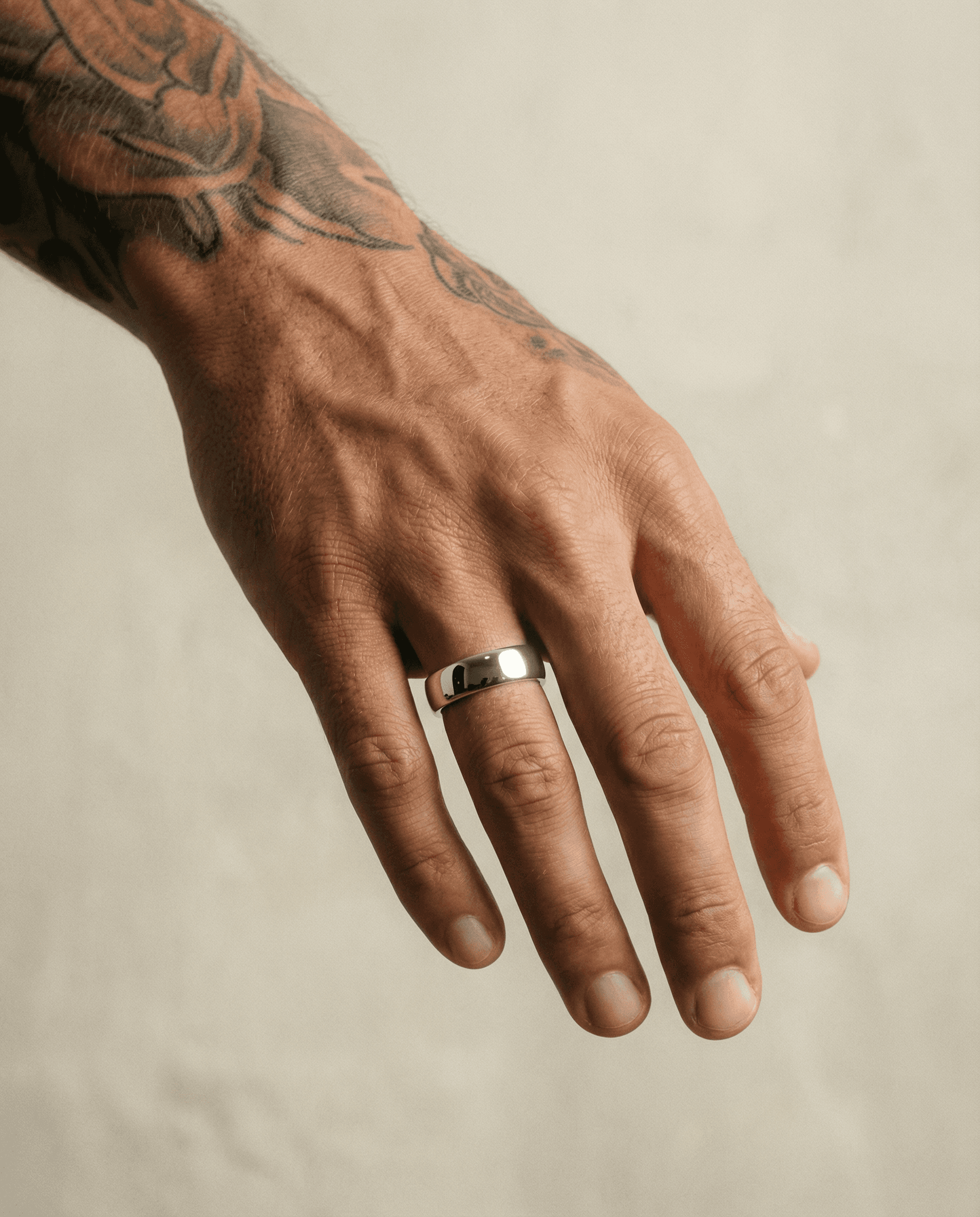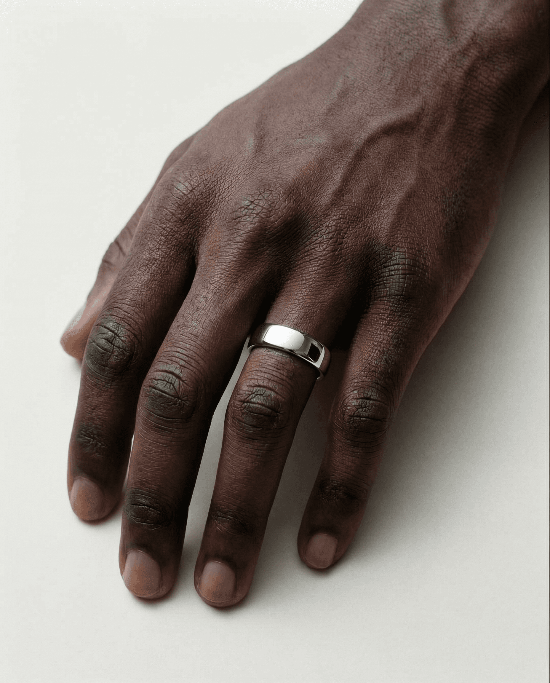 Milled from solid platinum and hallmarked (950) for authenticity. A dense, naturally white metal that maintains its colour and structure over time. Our choice for a precious white metal.